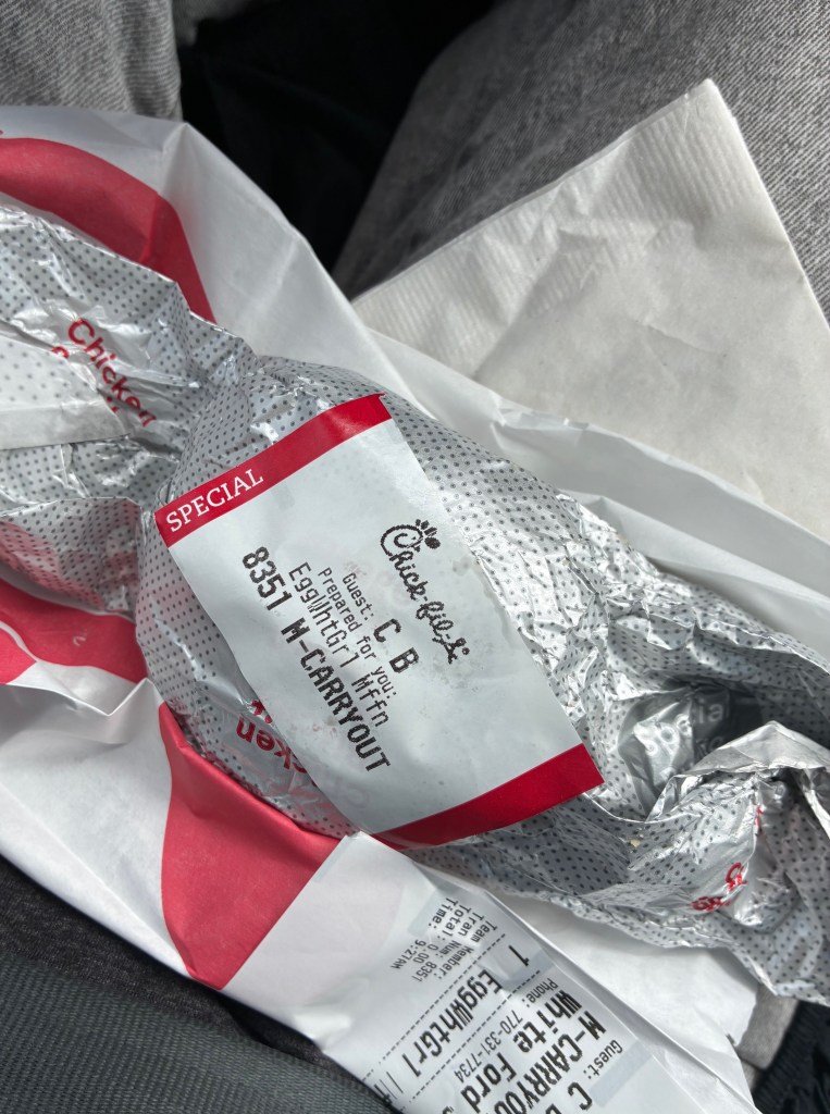 I also got a free breakfast sandwich at Chick-fil-A!